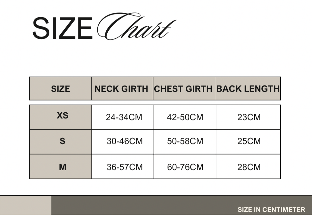 Raadpleeg de matentabel hieronder om de juiste maat voor jouw hond te vinden.